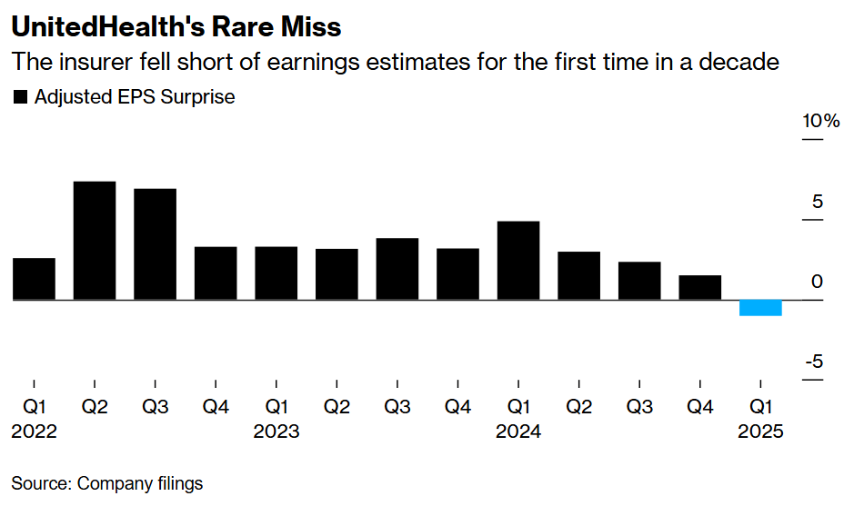 UnitedHealth Group Inc. cut its annual forecast and reported its first earnings miss in more than a decade, in a foreboding sign that weighed on other insurance stocks.